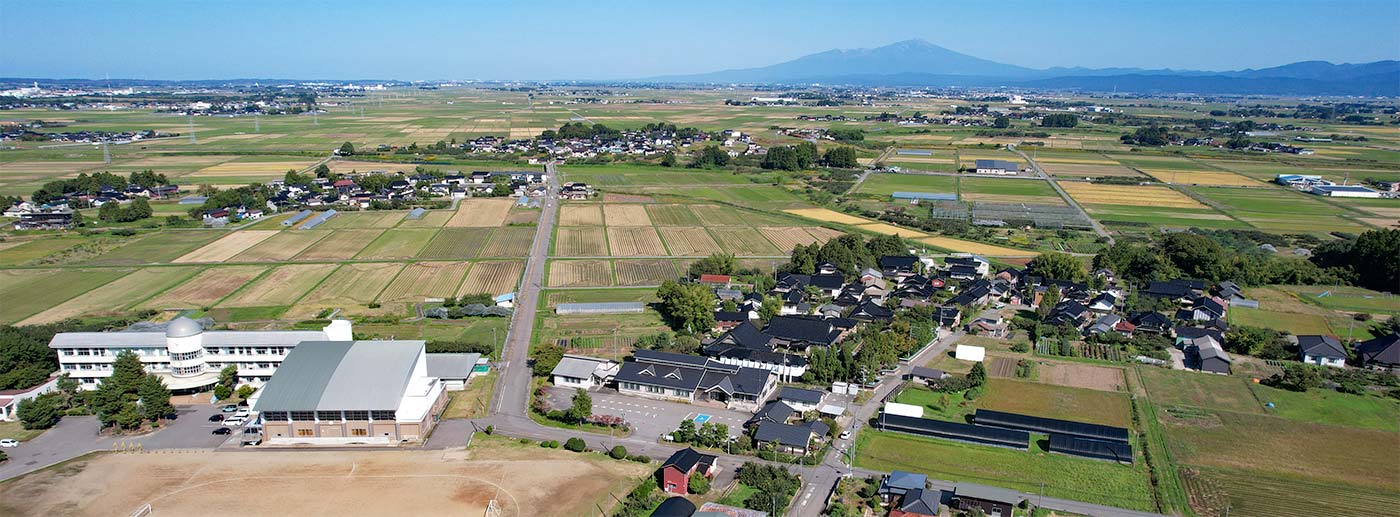 私たちが住む鶴岡市羽黒町広瀬地区は、旧鶴岡市の東に位置し、一級河川の赤川を挟んで接しており、標高15~60m程度の主に平野部で、田んぼや果樹園が広がっている田園地帯です。そのため、稲作や果樹などの農業が盛んにおこなわれていますが、実際には一次産業従事者よりも三次産業従事者の方が多くなっています。産業に関しては、竹の露酒造会社や株式会社ブルボン鶴岡工場、そして令和2年に新しくできたワイナリー ピノ・コッリーナなどがあります。